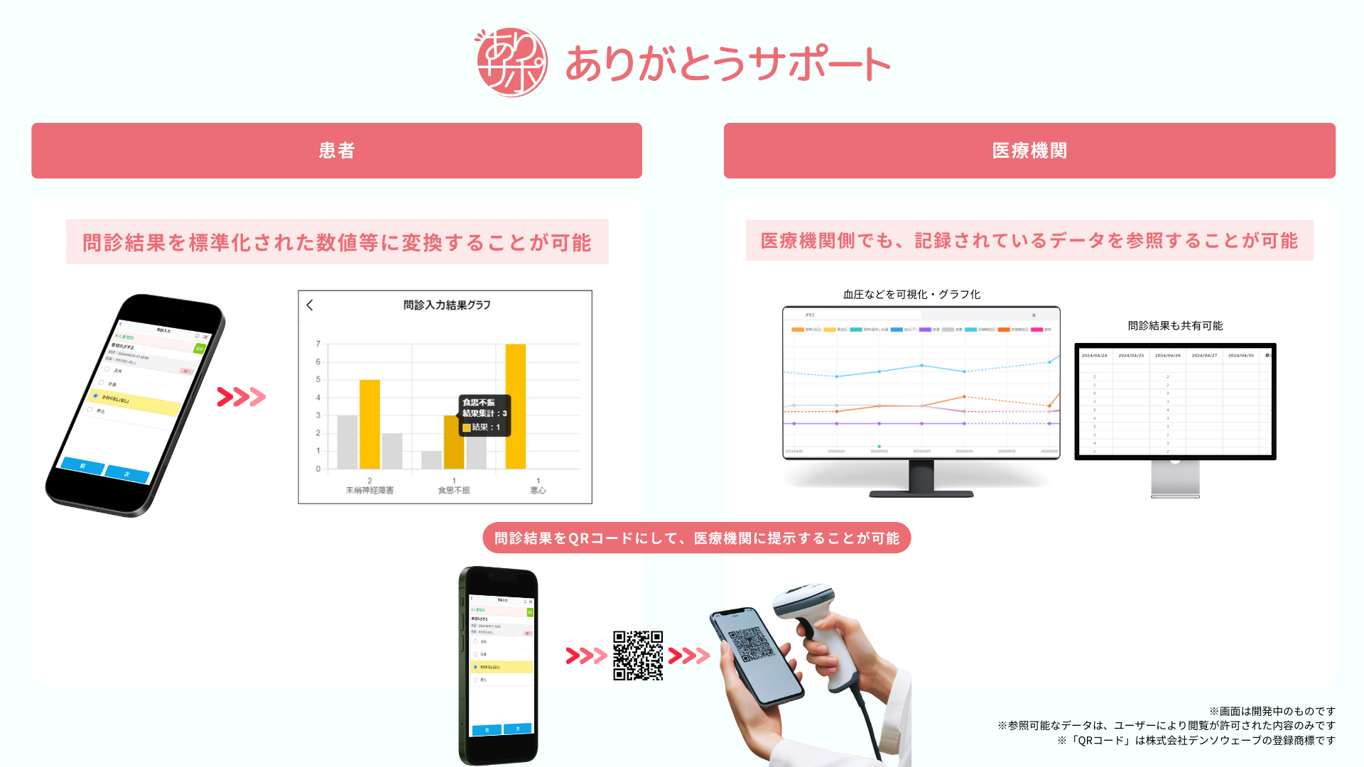 「ありがとうサポート」は、内閣府戦略的イノベーション創造プログラムの一環として開発された。問診情報を可視化し、院内の情報と統合することによって診療の質を高める。
