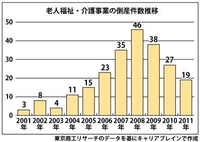 東京商工リサーチ情報部では、中小企業の資金繰りを支援する目的で09年12月に施行された「中小企業金融円滑化法」(モラトリアム法)や、09年度の介護報酬3%プラス改定などの効果が倒産減少の背景にあるとみている。 11年に発...