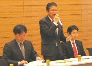 冒頭あいさつする長妻氏=中央=と、岡本氏=左=(29日、衆院第一議員会館)