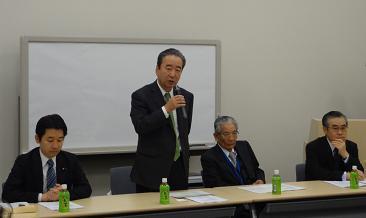 左から、梅村参院議員、鴨下衆院議員、高久日本医学会会長、門田がん研有明病院長(12日、参院議員会館)