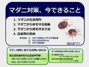 パンフレットでは、屋外で腕や足、首などの肌の露出を少なくするため、タオルを首に巻き、ズボンのすそを長靴の内側に入れるといった具体的な防護策を提示。シカやイノシシなどの野生動物が多く生息する環境に出没することや、民家...