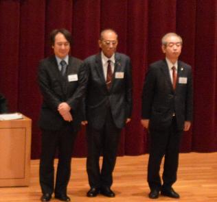 左から、松原氏、大野氏。右端は新理事の魚谷純氏(13日、日医会館)