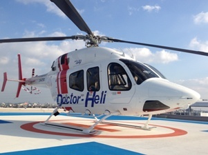 佐賀大医学部附属病院のヘリポートに駐機した最新型ドクターヘリ「ベル429」(写真提供=佐賀県)