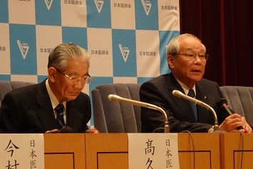 会見する高久・日本医学会会長=左=と横倉・日医会長(20日、日医会館)