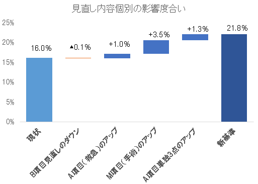 今回はより細かく疾患単位で見ることにより、疾患により看護必要度の評価が上がるものとそうでないものを示す。この結果を見ると、もはや感覚に頼った病棟運営は通用しなくなるかもしれない。これが良いことか悪いことかは正直分からない。7対1入院基本料を安定的に算定し続けるためには、経験・感覚に加え、データに基づく定量的な情報把握が必要であり、改定によってその重要性が増すことに疑いの余地はないだろう。