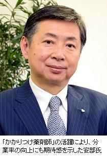 2016年度の調剤報酬改定では、患者が受診する医療機関や服用する薬の情報をすべて把握し、必要な服薬指導などを行う「かかりつけ薬剤師」が初めて導入される。分業率が7割に迫り、医薬分業が成熟期を迎える中、中央社会保険医療協議会(中医協)の診療側の安部好弘委員(日本薬剤師会常務理事)は、「かかりつけ薬剤師が地域の住民と顔の見える関係をつくり、その力を十分に発揮することができれば、おのずとその割合が向上することも考えられる」と期待を込める。【聞き手・構成=敦賀陽平】