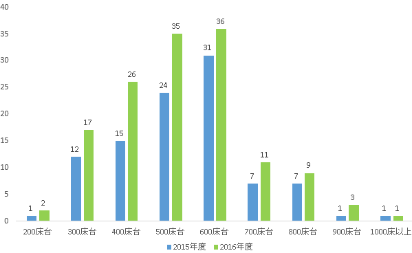先日、医療機関別係数が告示され、DPCⅡ群病院が99から140へ増加することになった。新たにⅡ群となった病院は300床-400床規模が比較的多いが、依然として500床以上が全体の7割を占め、大病院優位という状況は大きく変わらなかった=グラフ1=。