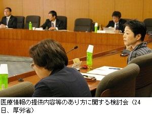 厚生労働省は24日に開かれた「医療情報の提供内容等のあり方に関する検討会」の初会合で、医療法上の広告として原則、位置付けられていない医療機関のホームページについて、広告に含めることなどを論点として示した。規制の対象とすることで、医療機関に是正命令や命令に違反した場合の措置を行えるようにする狙いがある。同省は今秋までに議論の取りまとめを目指す。【松村秀士】