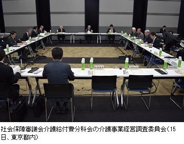 来年4月に予定される消費税率の8%から10%への引き上げに向け、社会保障審議会介護給付費分科会介護事業経営調査委員会は15日、介護関係団体などを対象にヒアリングを実施した。出席した団体関係者からは、消費税率引き上げへの具体的な対応策として、報酬改定によって単位数を上乗せするよう求める声が相次いだ。【ただ正芳】