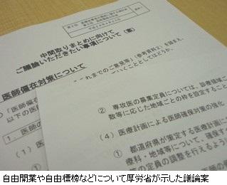 厚生労働省は20日、医療従事者の需給に関する検討会(医師需給分科会と共催)に対し、診療所の開設について、医師の自由開業・自由標榜の見直しを含めて検討する案を示した。医師の偏在解消を目指したもので、保険医の配置や定数の設定についても議論を促した。【新井哉】