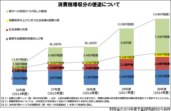 消費税率引き上げが予定通りに行われた場合、税率引き上げによる増収額は今年度の8.2兆円から大幅に増え、来年度は12兆円程度、18年度は14兆円程度になると推計されていた。それに伴い社会保障制度の充実に活用される財源も増える見通しだったが、税率引き上げの延期で、政府は来年度以降に実現させる施策の選別を迫られる =グラフ、クリックで拡大= 。