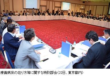 社会保障審議会の「療養病床の在り方等に関する特別部会」(部会長=遠藤久夫・学習院大教授)が22日、「介護療養型医療施設」(介護療養病床)などを運営する病院関係者に対するヒアリングを行った。関係者からは、既に示されている新たな類型案のうち、「医療機能を内包した施設系サービス」(医療内包型)をある程度、評価する声があがった一方、新たな類型でも病床の機能を維持することが不可欠とする指摘も続出。そのためには新たな類型でも現行の介護療養病床などの人員配置や設備などの各種基準や報酬などを維持する必要があるとの声も上がった。【ただ正芳】