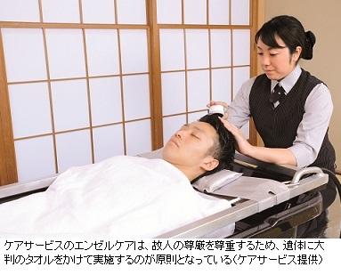 高齢者市場が拡大し続ける中、大きな可能性を秘めた“新大陸”として注目される介護保険外サービス。シリーズ「介護ビジネス新大陸」では、この分野に積極果敢に乗り出す開拓者を取り上げていく。今回、注目するのは葬儀を前に遺体の体を清めたり、化粧を施したりする「エンゼルケア」の老舗、ケアサービスだ。介護保険が誕生する前から「故人の尊厳の尊重」という旗印を掲げ、市場をけん引し続けている同社の責任者と現場担当者に取材した。【ただ正芳】