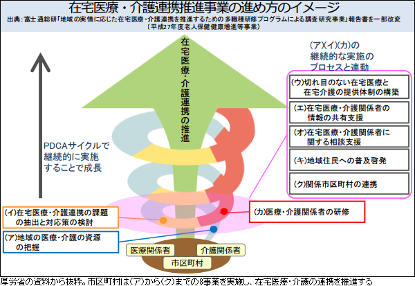 推進事業は、昨年4月の介護保険法改正で、認知症総合支援事業などとともに地域支援事業の一部となった。この制度改革は、団塊世代が75歳以上となる25年までに、地域包括ケアシステムを実現させるためのものだ。