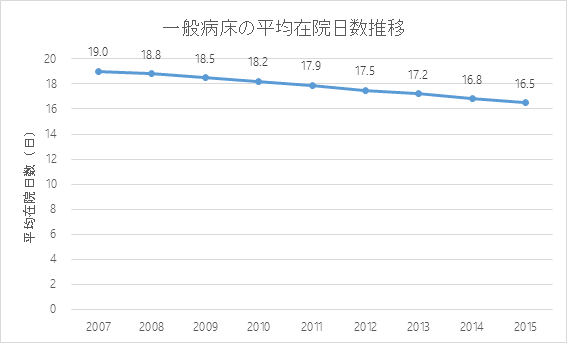 一般病床は在院日数の短縮が続いている=グラフ1=。