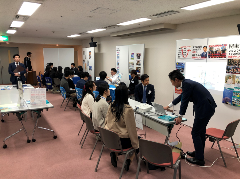 1ブースあたり学生3~5名の説明会です。